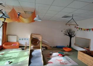 Die Kinder sind viel an der frischen Luft und spielen auf dem großzügigen Außengelände. In den Gruppenräumen selbst ist viel Platz für Bewegungsspiele, Angebote auf dem Boden und Mal- und Bastelangebote. Das Spielmaterial ist dem Alter und den Bedürfnissen der Kinder entsprechend abgestimmt und in Kinderhöhe angeordnet.