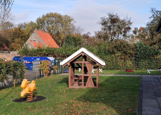 Der Eingangsbereich verfügt über einen großen Flur, der auch als Bewegungsraum genutzt wird. Weiterhin gibt es einen Wickelraum, zwei Gruppennebenräume, in welche sich kleinere Gruppen zurückziehen können, ein Büro, eine Küche, in der u.a. das Mittagessen täglich frisch zubereitet wird, mehrere Wirtschaftsräume und sanitäre Einrichtungen. Auf unserem Außengelände befinden sich mehrere Spielgeräte.