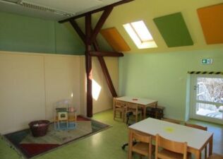 In den beiden Stockwerken des Gebäudes werden zwei Elementargruppen für Kinder von drei Jahren bis zum Schuleintritt betreut. Ein großes Außengelände bietet den Kindern viel Platz zum Toben, Spielen und Entdecken. Die Arbeit mit dem Papilio-Programm zur Stärkung der sozial-emotionalen Kompetenzen der Kinder ist fest im Gruppenalltag verankert.
